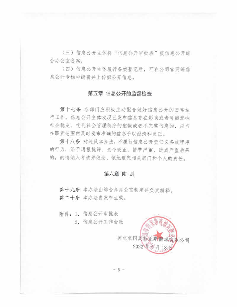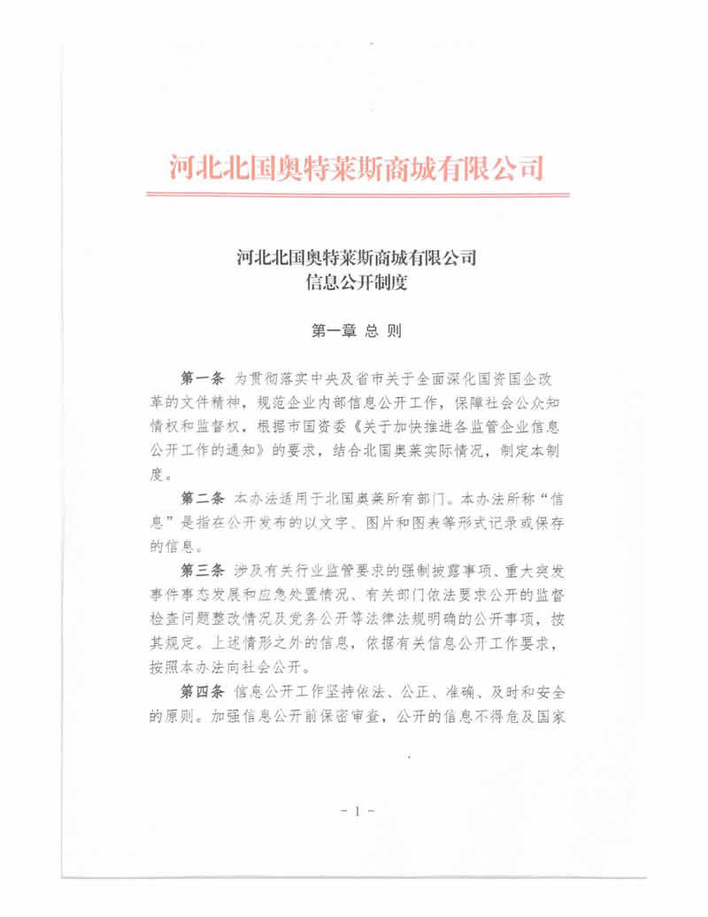 河北北国奥特莱斯商城有限公司信息公开制度