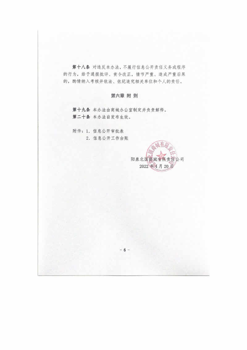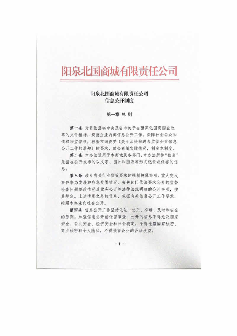 阳泉北国商城有限责任公司信息公开制度