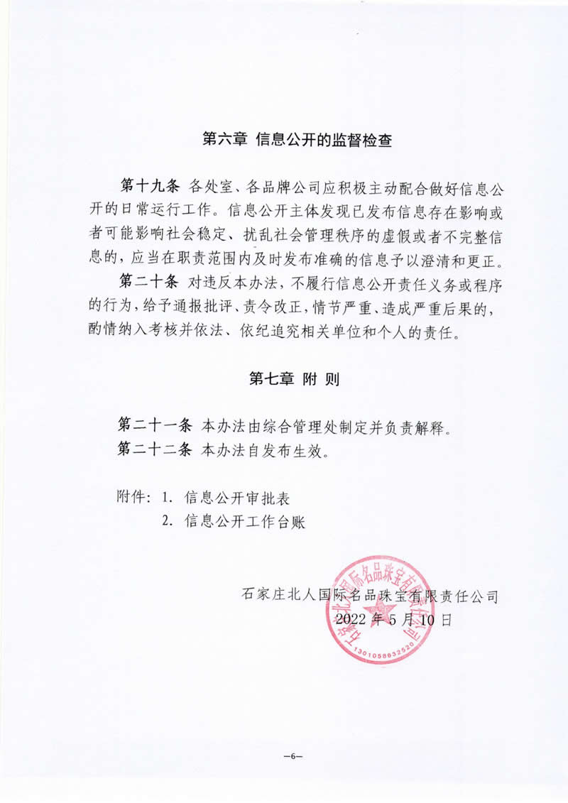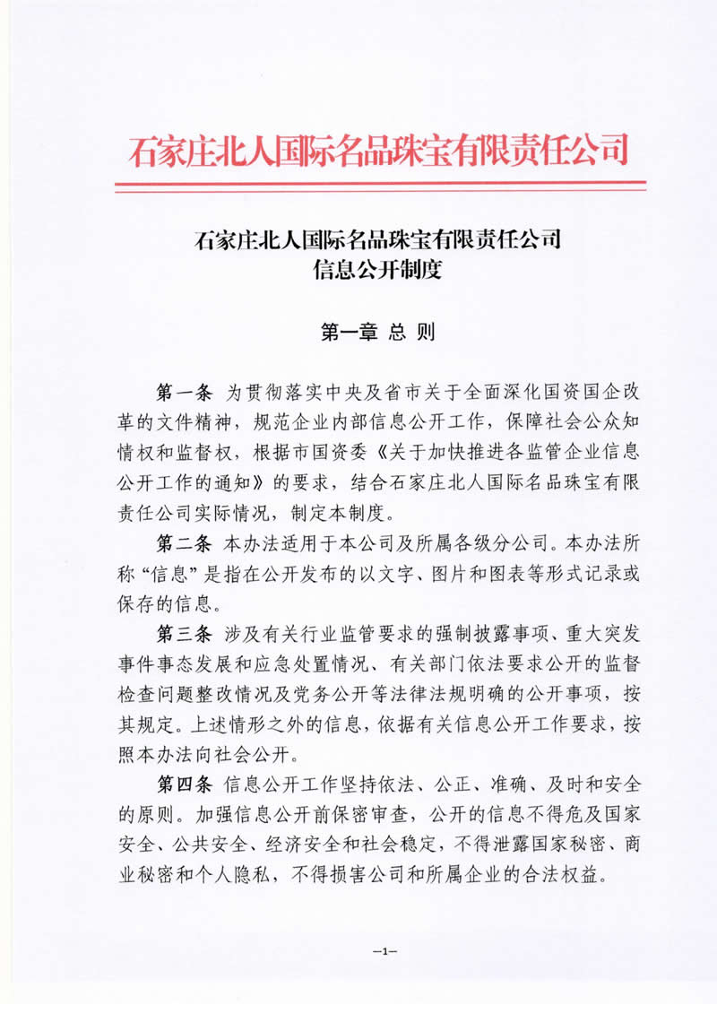 石家庄北人国际名品珠宝有限责任公司信息公开制度
