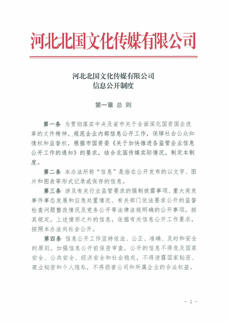 河北北国文化传媒有限公司信息公开制度