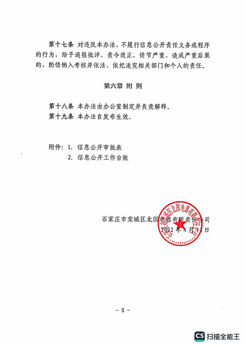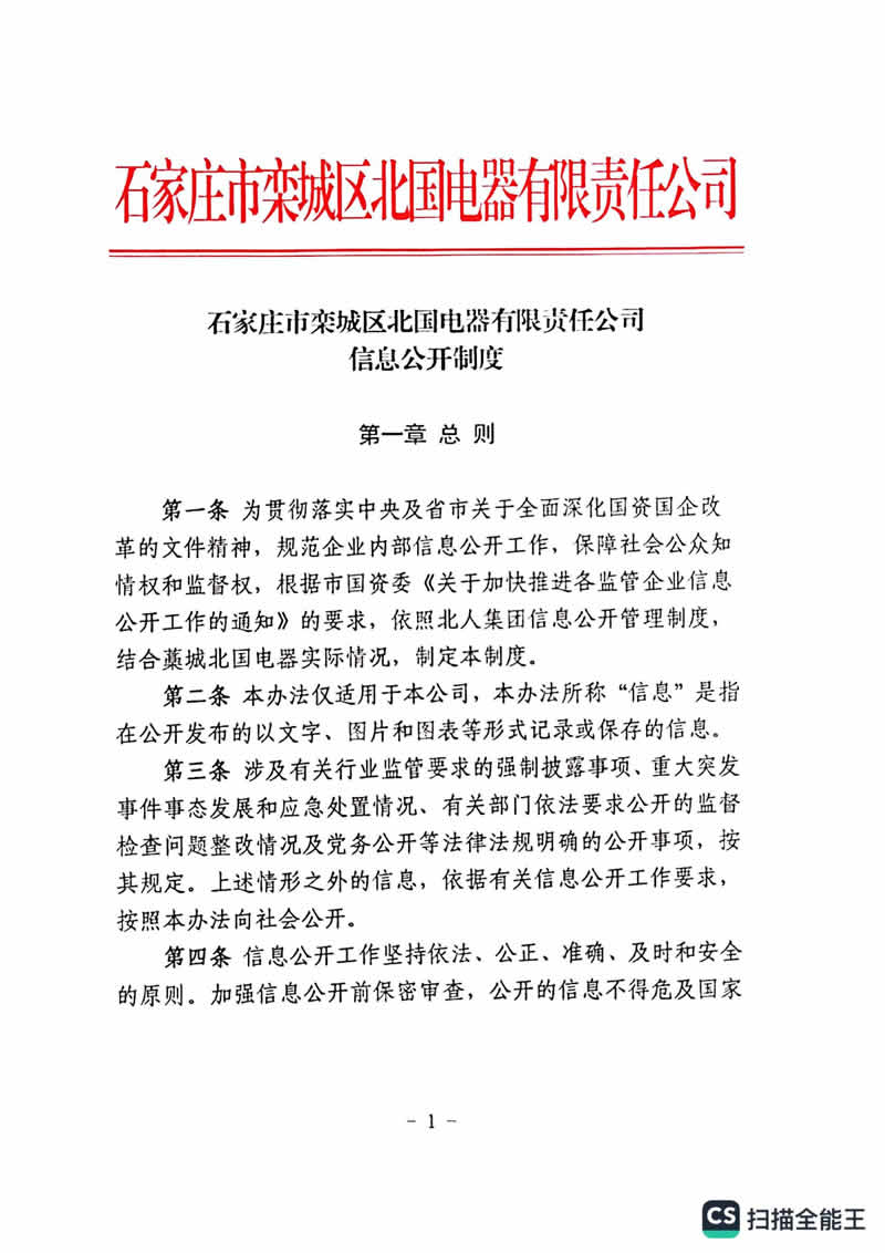 石家庄市栾城区北国电器有限责任公司信息公开制度