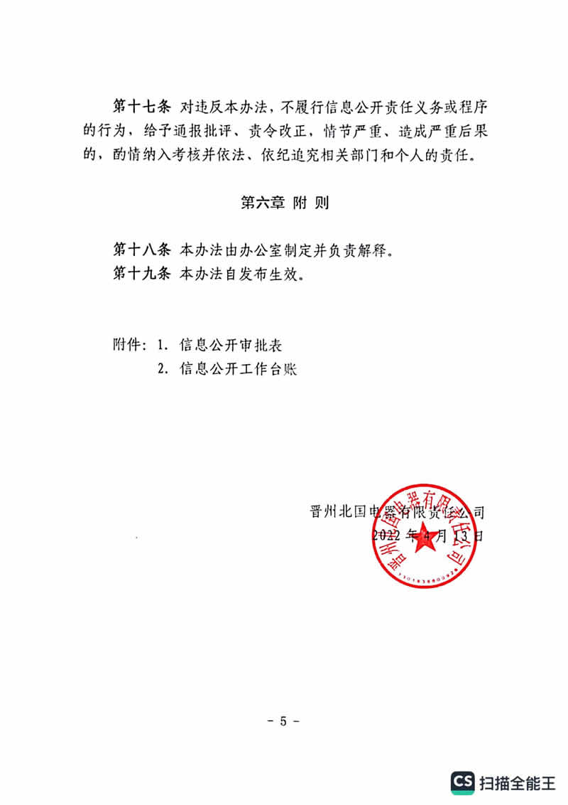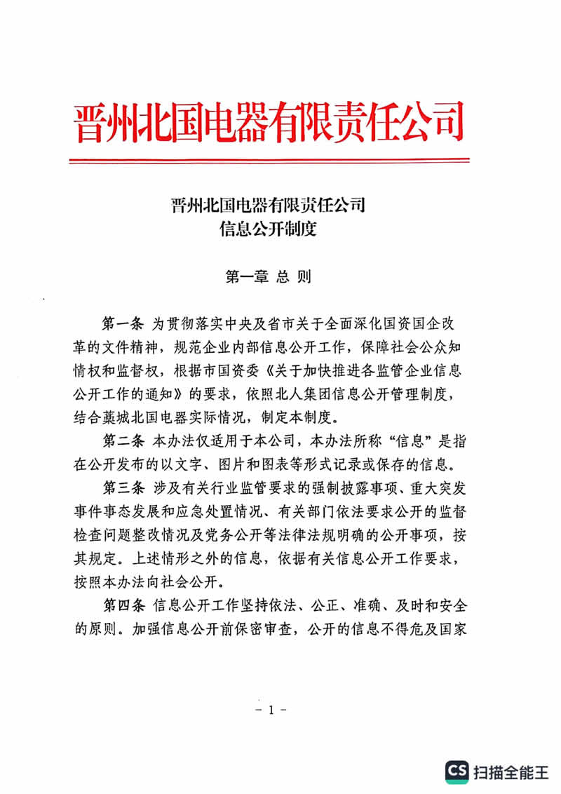 晋州北国电器有限责任公司信息公开制度