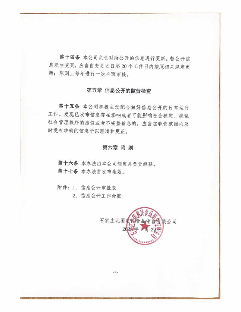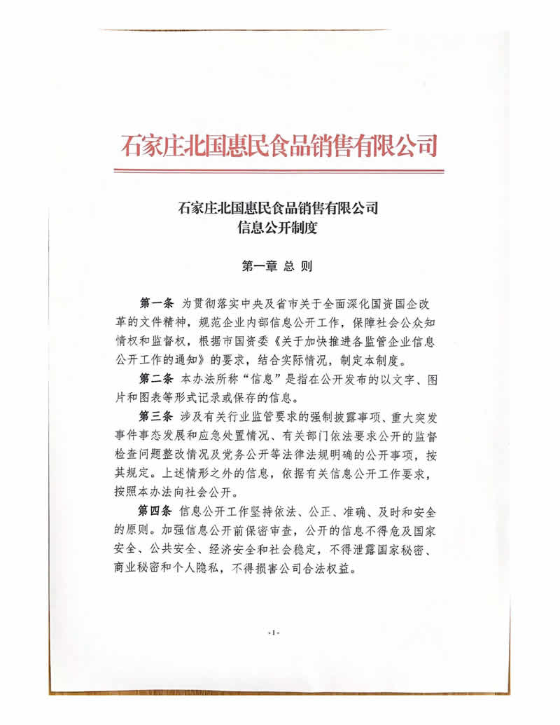 石家庄北国惠民食品销售有限公司信息公开制度