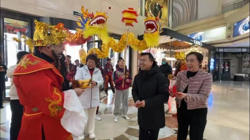 伴随着欢快的舞龙乐曲,北国商城甲辰龙年迎宾仪式欢乐开启!徐建航、刘隽在北国商城负责人沈峥陪同下,共同迎接着龙年新春来到北国商城的第一波客人!