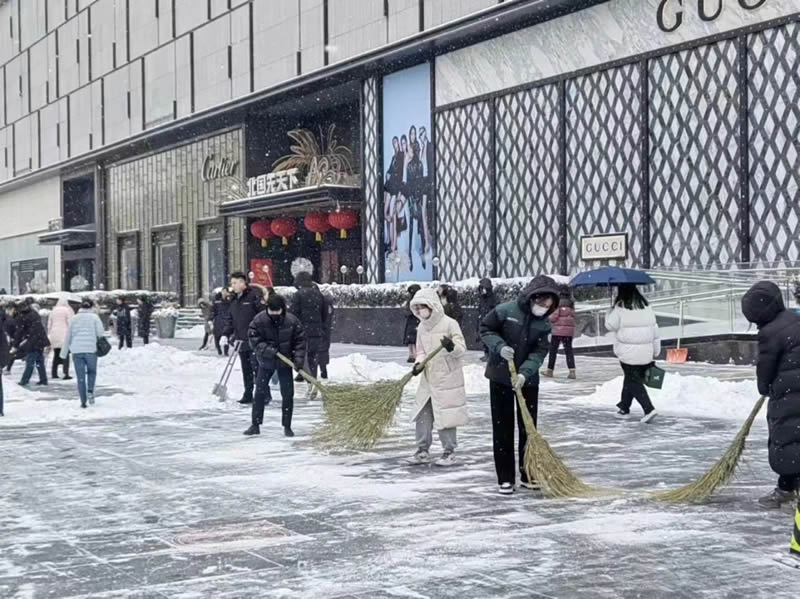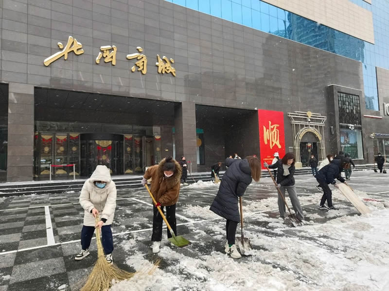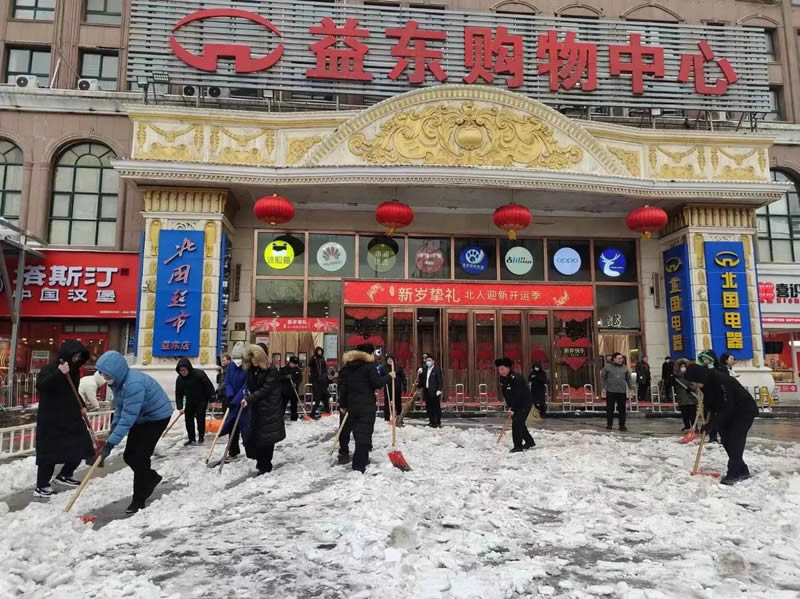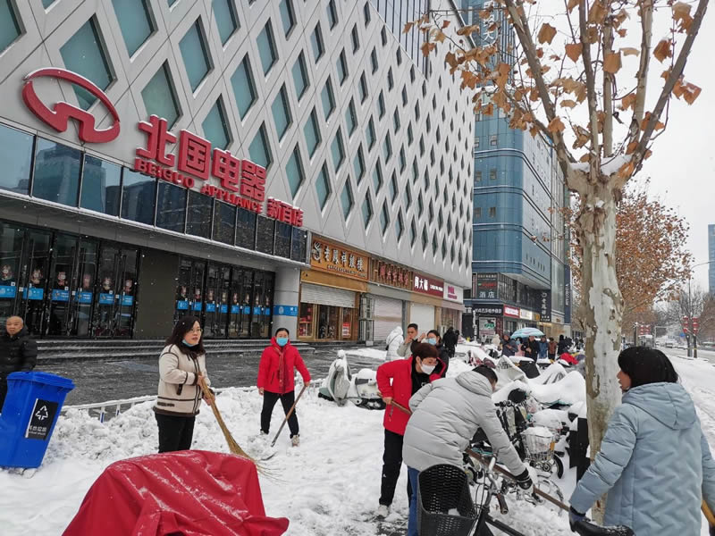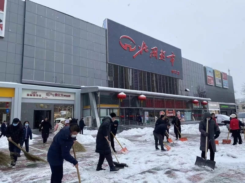2月20日至21日,石家庄普降大雪,给市民出行、消费者购物带来了诸多不便。北人集团旗下各卖场认真履行“门前三包”义务,组织干部员工及时清理门前积雪和残冰,保障门店前道路通畅、行人安全出行。