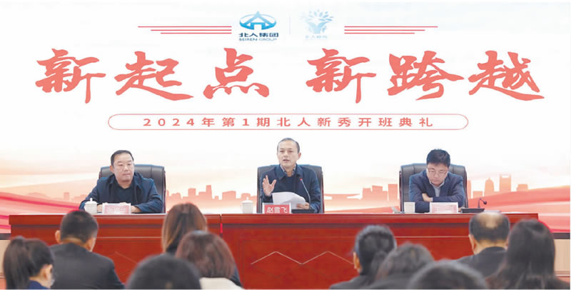 青年逢盛世,奋斗正当时。2月27日上午,北人集团2024年第1期北人新秀开班典礼在北人商务大厦召开。北人集团党委副书记、工会主席赵雪飞,北国股份党委副书记、工会主席王浩,饮食公司党委书记、董事长张岩华出席开班典礼。