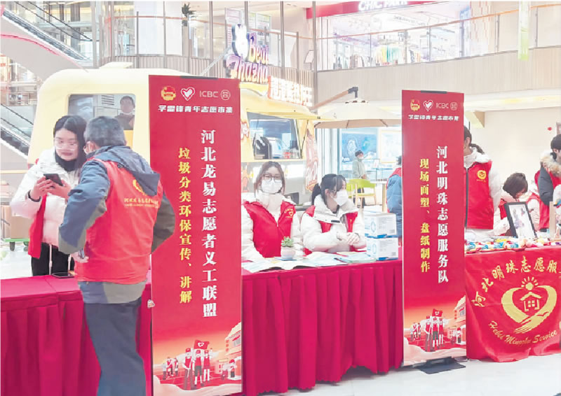 为认真学习贯彻习近平总书记关于深入开展学雷锋活动的重要指示精神,弘扬“奉献、友爱、互助、进步”的志愿精神,鼓励和引导广大青少年积极投身志愿服务事业,3月5日,由共青团河北省委、河北省青年志愿者中心、河北省青年志愿者协会指导,共青团石家庄市委主办,中国工商银行石家庄分行、石家庄北国人百集团有限责任公司、共青团桥西区委协办的学雷锋青年志愿服务市集暨2024年学雷锋志愿服务行动月活动在北国未来城举行。河北省青年志愿者中心主任曲圆,共青团石家庄市委书记王玮、副书记李庆赟,北人集团党委副书记赵雪飞以及工行石家庄分行相关领导出席。30多个来自各级团组织、青年志愿者协会和青年志愿服务队的志愿服务摊位火热开集。