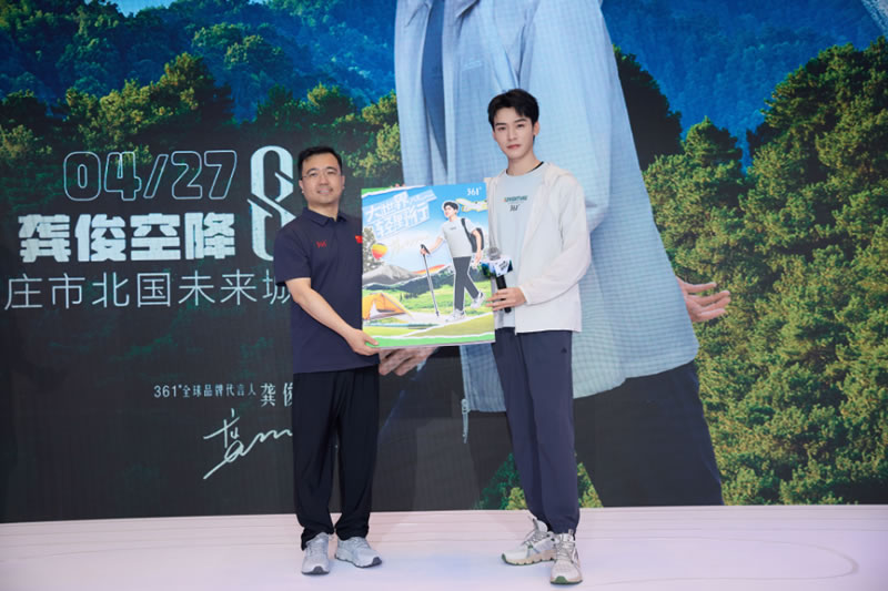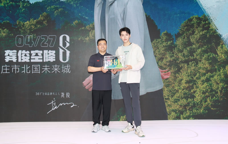 4月27日下午,361°全球品牌代言人龚俊线下活动见面会在石家庄北国未来城举办,现场氛围热情火爆。北人集团党委书记、董事长徐建航,党委副书记、工会主席赵雪飞,副总经理王慧桥、刘隽出席361°龚俊线下见面会。徐建航为龚俊送上来自361°顶级碳板鞋飞燃3跑鞋。龚俊也为北人集团精心准备了一份具有纪念意义的礼物——一幅艺术拼贴画作。