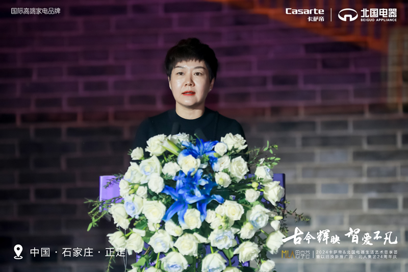 北人集团党委副书记、总经理胡文茹发表致辞。她表示,值此端午佳节之际,非常开心和大家相聚在正定古城,共同领略“古今辉映 智爱不凡”卡萨帝&北国电器生活艺术思享荟暨石家庄以旧换新·北人集团24周年庆文化艺术盛宴。24年来,北人集团始终秉承“勇争第一”的企业精神,不断优化布局、调整结构,推动集团高质量发展。集团旗下北国电器持续聚焦产品品质,为用户提供了高端化、智能化、健康化、个性化的家电产品;持续升级服务体验,带给用户更多高品质、多样化、沉浸式服务体验,更加精准地把握和挖掘消费者的需求,满足消费者对美好生活的向往。