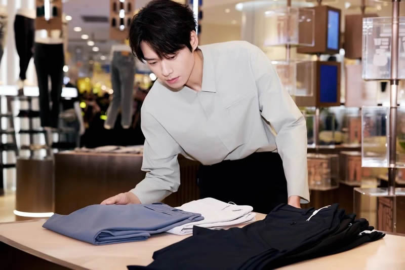 魏大勋到北国商城四楼参观九牧王门店,体验了九牧王线下门店的多种产品和独特空间风格。