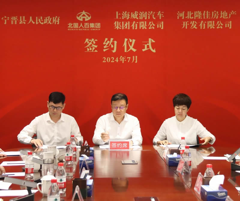 7月31日上午,宁晋县人民政府、宁晋县相关企业与北人集团签约仪式在北人集团举行。宁晋县委书记王涛,县委常委、常务副县长张康宁,县委常委、办公室主任申立强,政府副县长王志辉,上海威润汽车集团有限公司总经理胡栋梁,河北隆佳房地产开发有限公司总经理周立峰,北人集团党委书记、董事长徐建航,党委副书记、副董事长、总经理胡文茹,党委副书记、工会主席赵雪飞,副总经理王慧桥、刘隽出席签约仪式。