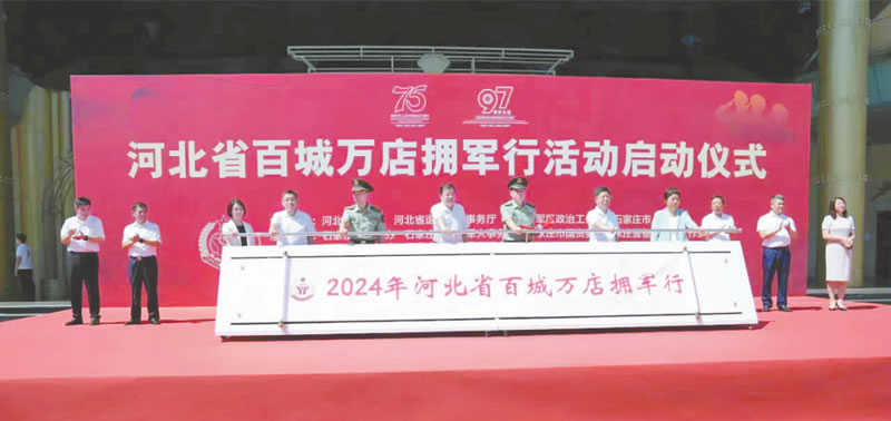 今年是新中国成立75周年,是中国人民解放军建军97周年,是新一届全国双拥模范命名争创之年。为持续弘扬我市拥军优属光荣传统,动员社会各界为军人军属、退役军人和其他优抚对象提供更多优先优惠优质服务,7月18日,由河北省双拥办、省退役军人事务厅、省军区政治工作局、石家庄市人民政府主办,市退役军人事务局、市国资委、石家庄警备区政治工作处、桥西区人民政府、河北省爱国拥军促进会承办,石家庄北国人百集团有限责任公司协办的河北省暨石家庄市“百城万店拥军行”活动启动仪式在北国商城举行。