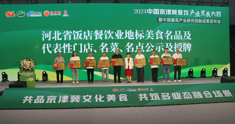在“2024 中国京津冀餐饮产业发展大会暨中国冀菜产业研究创新成果发布会”上,“中和轩蒸饺”“燕风楼红肠”“石饮红星包子”“釜洋斋涮羊肉”凭借其独特的口味、精湛的烹饪技巧、绿色健康的食材以及对传统冀菜的创新演绎,成功荣获“河北省地标美食名品”称号。这四款菜品不仅展现了公司厨师团队对传统烹饪技艺的传承,更体现了他们在创新方面的不懈追求,为冀菜文化、地标美食的发展注入了新的活力。李刚、徐鸿杰、刘利国三位烹饪大师,凭借其多年积累的深厚烹饪功底、独特的菜品创意以及对冀菜文化的深刻理解和传承创新精神,被授予“中国冀菜名厨英才”荣誉称号。公司大师工作室因其在菜品研发、人才培养、行业交流等方面的突出表现和显著成果,尤其是在传承冀菜经典、推动冀菜创新发展方面所做出的不懈努力和重要贡献,通过了“冀字号大师工作室”项目评定。