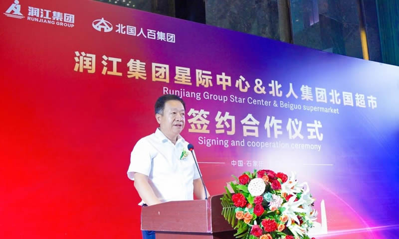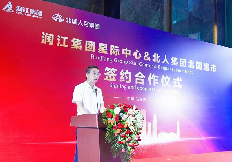 石家庄高新技术产业开发区管理委员会党工委委员、人民武装部部长吴炳卫发表讲话,他表示,高新区管委会不断致力于推进主导产业快速发展,同时致力于推动城市公共服务的成熟完善。润江集团星际中心已跃居高新区商圈的标志性商业综合体,北人集团北国超市更是有口皆碑,家喻户晓的知名品牌,此次合作不仅是两家企业的强强联合,更是区域商业资源的有效整合,高新区管委会将全方位服务、全方面保障,为北国超市的开店提供全力支持。希望双方秉持诚信经营、互惠互利、共同发展的经营理念,笃定务实,精诚合作,努力打造时尚、人文智慧的商业新高地。