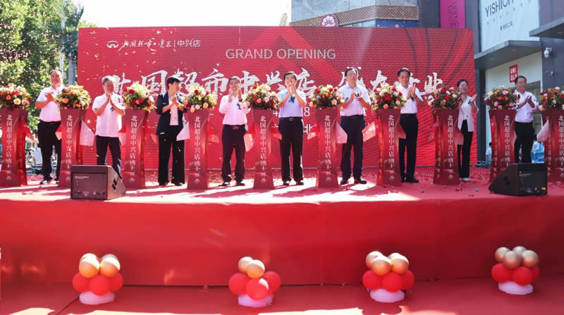 8月28日上午,北国超市中兴店开业仪式在邢台市世贸天街购物广场举行。邢台市政协主席邱文双,市人大副主任李群江,市商务局党组书记、局长王俊国,襄都区委书记李秀娟,区委常委、宣传部部长陈现芳,区委常委、区委办公室主任乔万国,河北富兴集团董事长郝京茂,河北和林投资股份有限公司董事长陈茂林,北人集团党委书记、董事长徐建航等领导、嘉宾出席开业庆典仪式。