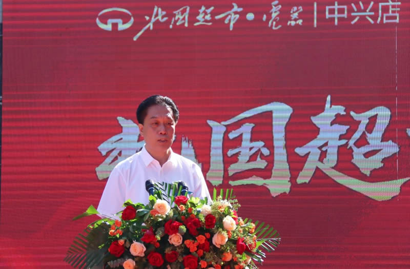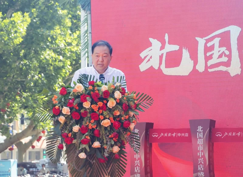 北⼈集团党委书记、董事长徐建航发表致辞,他向出席开业仪式的各位领导、嘉宾表示感谢。他指出,邢台是一座历史文化名城,区域特色鲜明,自然资源丰富,当前大力推进的“太行泉城 美丽邢台”城市品牌建设,焕发着新的光彩与生机,极大振奋了投资者和企业家的信心。北人集团与邢台有着深厚的合作基础和情谊,北国商城入驻邢台的十一年间,邢台北国商城以“引领消费时尚 共创美好生活”为使命,创造了良好的经济和社会效益。北国超市中兴店,是北人集团在邢台拓展的重要一步,也是北人集团在石家庄以外地区开设的最大的超市卖场,相信在邢台市委、市政府的大力支持下,在襄都区各级领导和职能部门的指导下,北国超市中兴店能与河北富兴集团携手共进,为邢台带来美好生活的更多选择,为繁荣区域经济、丰富市民生活贡献北人力量!