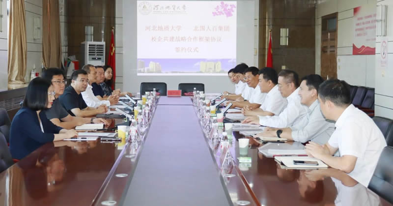 河北地质大学党委书记和志强详细介绍了河北地质大学的办校历程及发展定位,他表示北人集团作为全市最为知名的商业企业,经过多年发展已成为以经营生活方式为主体的多元化大型商业集团,与河北地质大学工商管理、电子商务、物流管理等学科专业有着许多发展契合点。希望双方以本次签约为契机,进一步加强校企协同创新,在人才培养、科研成果转化、校园商业服务配套、模式探索等方面强强联合,实现学生学校企业三方共赢,共同打造校企合作的新名片和新样板,推动双方综合实力、区域竞争力、服务创新发展能力再上新台阶。