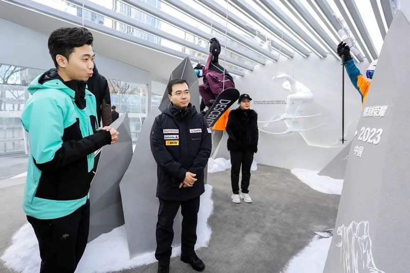 徐建航首先参观了迪桑特三里屯全球旗舰店及迪桑特「ThePeak限时快闪」,详细了解迪桑特品牌与滑雪运动并肩前行的发展历程及产品传承,实地体验滑雪VR互动装置,并与迪桑特(中国)有限公司董事长丁少翔、迪桑特(中国)有限公司总裁乐俊就店铺定位、未来深度合作发展进行交流沟通。