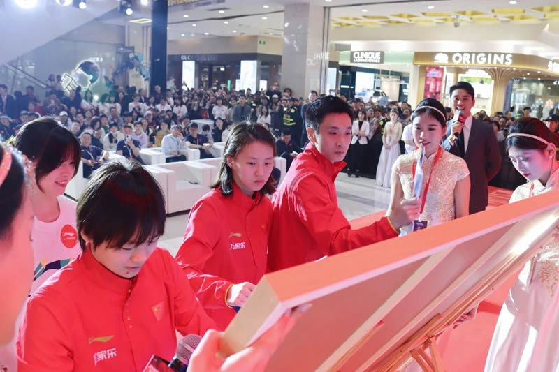 4月20日上午,李宁新店共鉴会暨中国国家跳水队见面会在北国商城举行,奥运冠军全红婵、陈芋汐、曹缘莅临北国商城,与现场观众亲密互动。河北省体育局财务保障和产业服务中心主任郝岩,跃翔体育集团董事长马连军,北人集团党委书记、董事长徐建航,党委副书记、副董事长、总经理胡文茹,纪委书记、监事会主席闫军国,副总经理王慧桥,集团领导陈晓杰出席见面会。