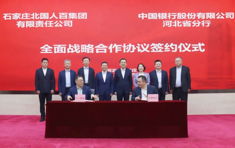 4月24日,北人集团与中国银行河北省分行全面战略合作签约仪式在中国银行河北省分行举行。中国银行河北省分行党委书记、行长段忠辉,副行长靳会轻,中国银行河北省分行副行长、石家庄分行行长王德青,中国银行河北省分行党委委员宿涛,北人集团党委书记、董事长徐建航,集团领导陈晓杰,北国股份党委委员、副总经理马习军出席仪式。双方就会员服务、数据共享、共建智慧招商选品管理平台等方面内容展开座谈。