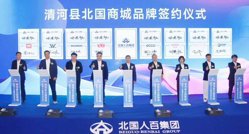 招商大会上,北人集团党委书记、董事长徐建航与爱步、鲁花、爱慕等八家供应商代表签订合作协议,涵盖百货、娱乐、食品等多个领域。在现场观众和媒体的共同见证下,领导、嘉宾代表共同按下启动按钮,宣告清河北国商城项目招商正式启动。