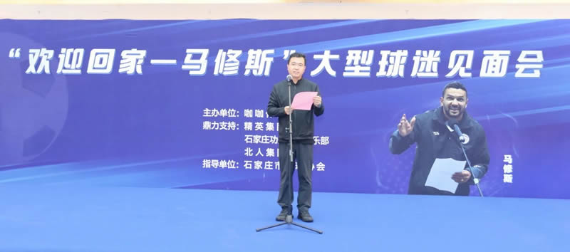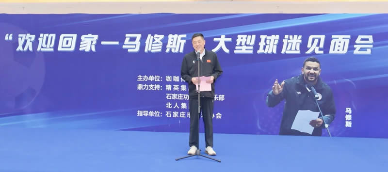 北人集团党委书记、董事长徐建航致辞,他代表北人集团向马修斯先生致以崇高敬意,向所有热爱石家庄足球的朋友表示衷心感谢。他指出,马修斯是石家庄足球的旗帜。五年间,他用55粒进球、51次助攻点燃了这座城市的激情,他的拼搏精神与石家庄“勇毅前行”的城市品格深深共鸣。北国未来城的这次活动,正是要让体育精神融入城市烟火——让英雄的故事走进生活,让运动的魅力激活消费。近年来,石家庄市大力推动体育与商业深度融合,商圈大屏直播赛事、运动主题市集、全民健身角等创新形式,让市民在休闲中感受体育活力。今天的活动让体育情怀激活商圈活力,传递健康生活理念,这场重逢既是市民共享的运动盛宴,更是球迷们的难忘之旅。未来,北人集团将持续深化体商融合,不定期举办全民健身主题活动,建立体育特色商圈,推出更多惠民举措,让市民得实惠、城市添活力。愿体育精神与城市烟火交织,共同谱写石家庄“活力之城、幸福之城”的新篇章!