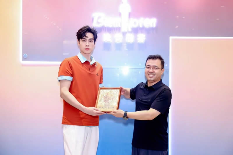 胡一天首先来到北国商城四楼参观比音勒芬门店,体验了比音勒芬线下门店的多种产品和独特空间风格,并与北人集团党委书记、董事长徐建航互赠了礼品。