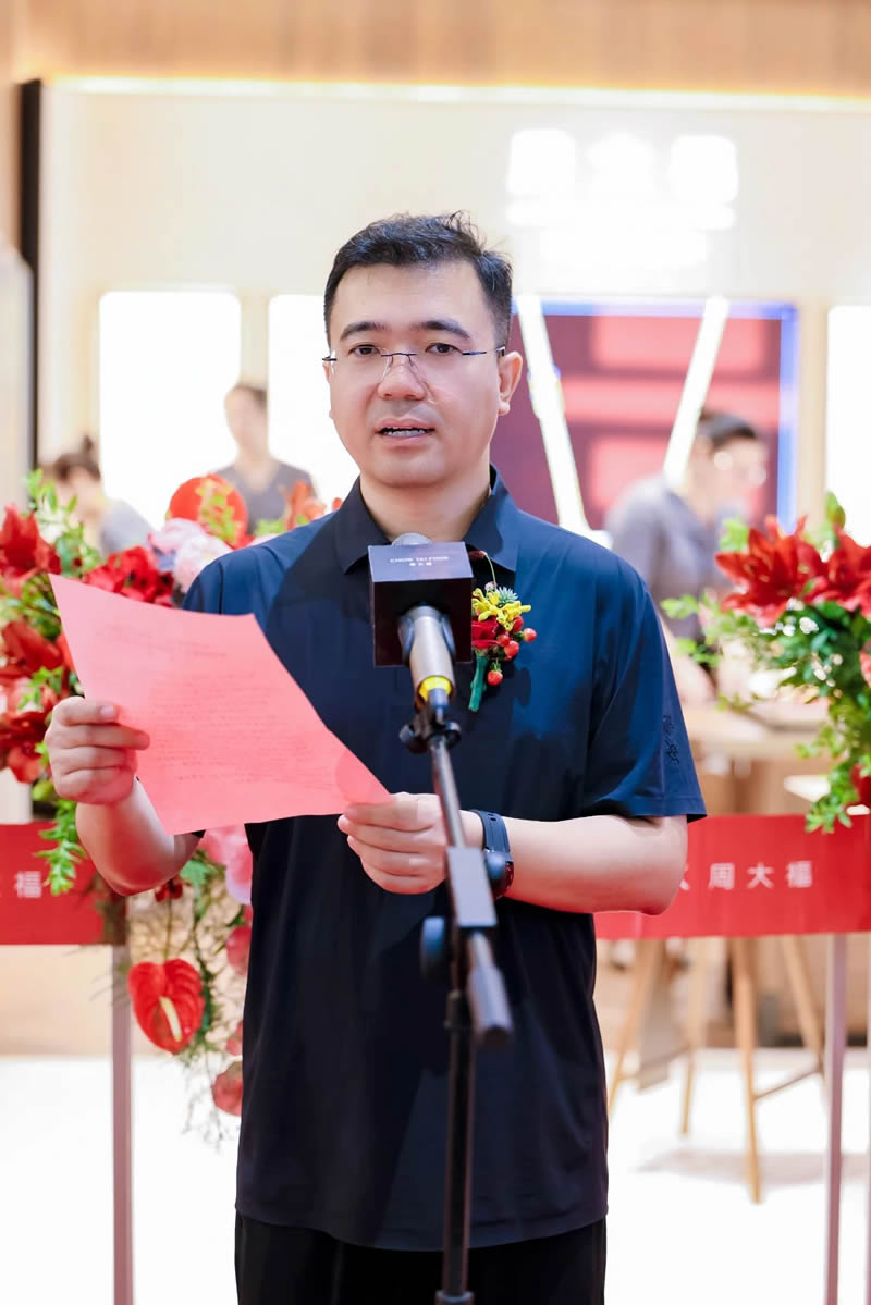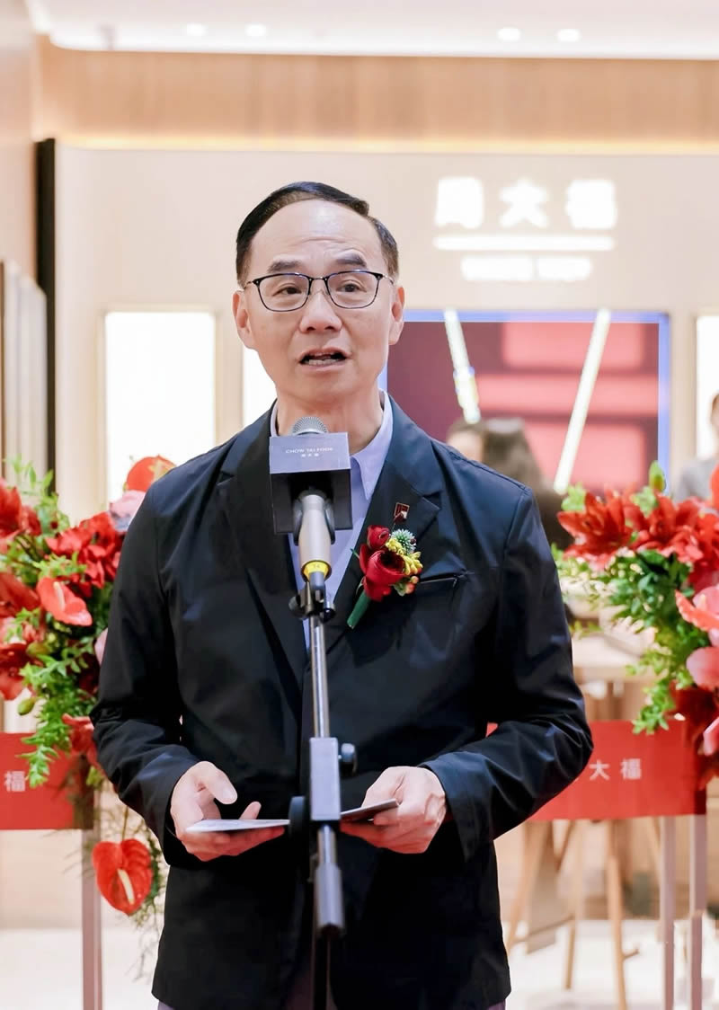 周大福珠宝集团董事总经理黄绍基致词。他表示,2024年,为拥抱消费升级浪潮,满足多元市场需求,周大福正式开启品牌转型之旅。石家庄北国商城作为河北省商业标杆,承载着万千消费者的信赖与期待。此次周大福新形象店的落地,不仅是我们品牌转型之旅的重要环节,更是打造全新珠宝零售场景,与年轻一代建立情感共鸣的创新实践。24年来,周大福与北人集团并肩探索商业创新,以卓越服务赢得消费者口碑。未来,双方将继续发挥各自优势,为大家呈现一场融合东方美学与现代时尚的珠宝盛宴。