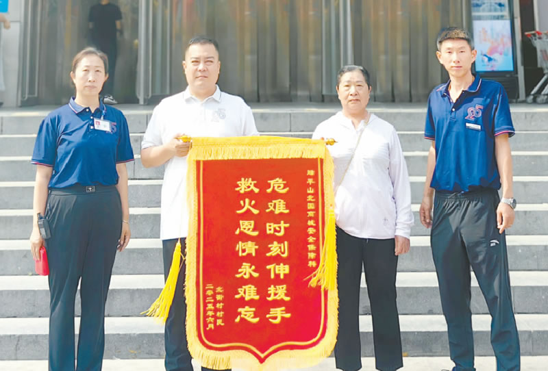 6月20日,平山北国商城附近民房突发火情。安全保障科梁哲辉、肖晨光迅速赶赴现场,沉着指挥灭火,仅用10分钟便将火势扑灭。二人临危不惧、处置得当的表现赢得村民高度赞誉。事后,获救村民专程送来锦旗,对商城员工的专业素养和英勇行为表示衷心感谢。