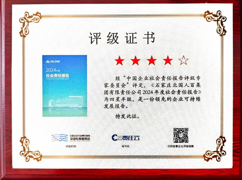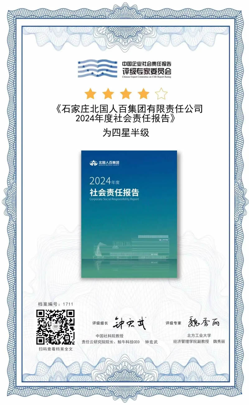 近日,经中国企业社会责任报告评级专家委员会严格评定,《北人集团2024年度社会责任报告》获得“四星半级”评级。