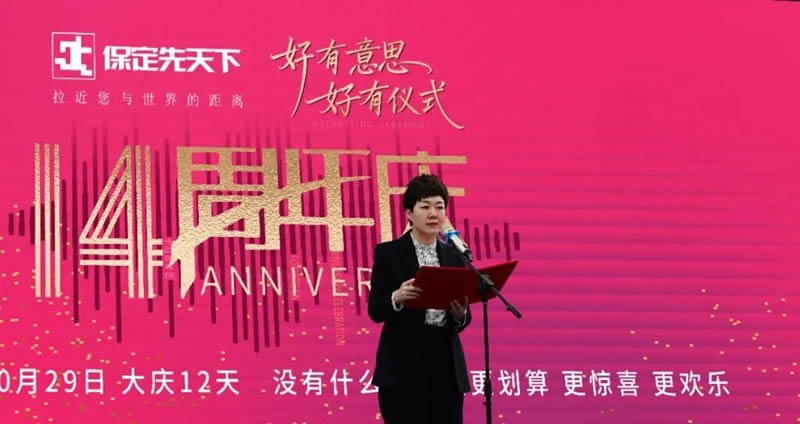 仪式在一曲气势磅礴的《盛世鼓韵》中开场,集团党委副书记、副董事长、总经理胡文茹致辞,她表示,十四载时序更迭,保定先天下广场始终以“先行者”姿态,融入城市发展大局,打造前沿生活方式策源地,奏响都市生活美学的“交响诗篇”。十四载深耕不辍,北人集团坚持以消费者价值为中心,投入充足资金和精英团队深耕保定市场,携手国际国内头部品牌阵容,为保定地区消费者带来愉悦美好的时尚体验。站在十四周年的新起点,保定先天下广场将继续与城市的文化肌理共鸣,以无限的灵感与坚实的步伐持续引入新业态、打造新场景、优化新服务,创造更多独一无二的“本土叙事”,以实际行动践行“引领消费时尚 共创美好生活”的企业使命,共同开启更加辉煌的时尚旅程。